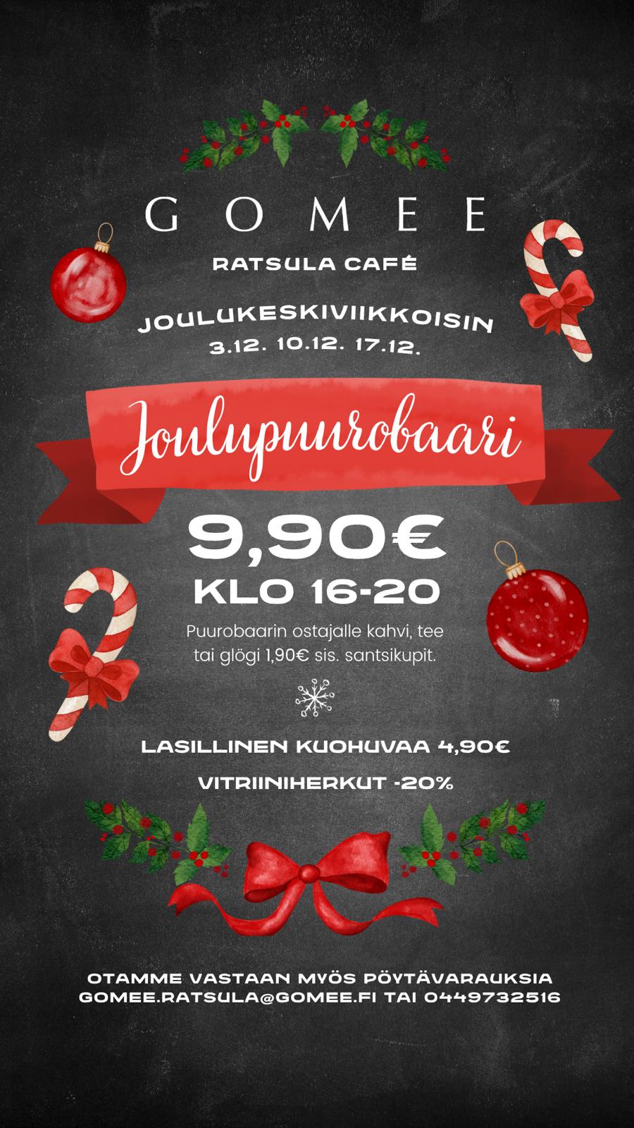 Täältä se tulee, nimittäin Gomee Ratsula Cafèn Joulupuurobaari ensimmäistä kertaa!!
